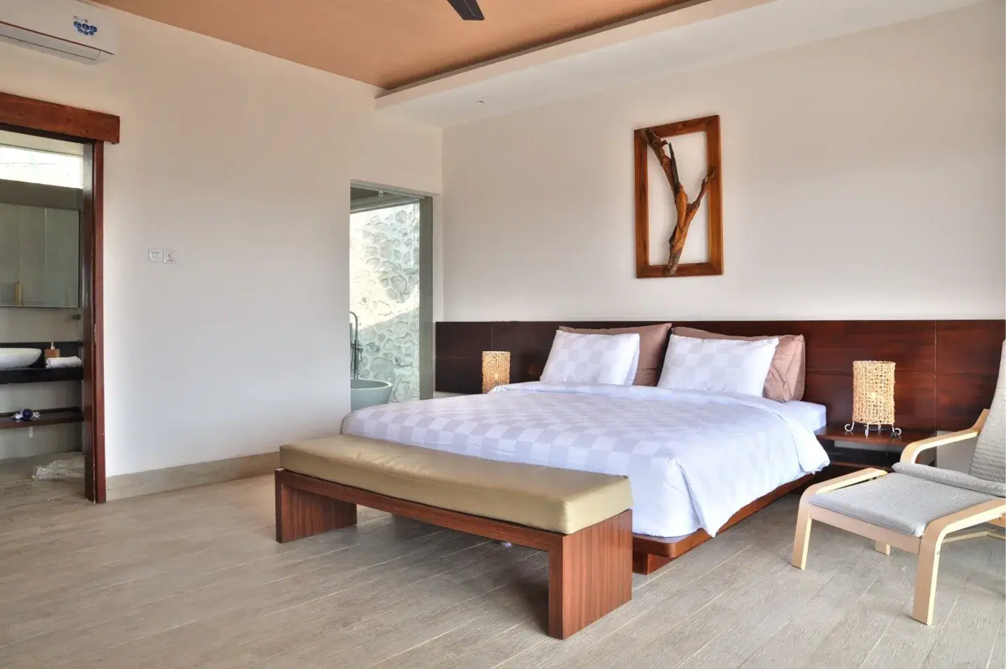 Sima Lombok menawarkan nuansa kamar yang memadukan sentuhan modern dengan sentuhan ornamen tradisional.